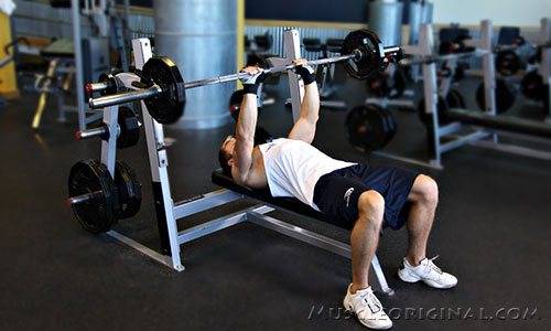 Напротив, наиболее эффективными и безопасными базовыми упражнениями для тренировки трицепса являются жим штанги лежа узким хватом и отжимания на брусьях с отягощением. При этом в данных упражнениях для безопасности Ваших локтевых суставов следует придерживаться определенной техники, а именно не выпрямлять локти до конца. Такая техника имеет свои преимущества, Вы сохраняете целыми свои суставы при этом трицепс находится в постоянном напряжении.