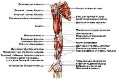 Бицепс – производная из двух мышц: двуглавой мышцы плеча, и плечевой мышцы. Двуглавая мышца плеча составляет большую часть от объема бицепса. Она состоит из двух головок, которые начинаются на лопатке и соединяются в районе лучевой кости. Главной задачей двуглавой мышцей является повороты предплечья, а также сгибание руки в локте.