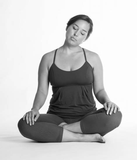 - Сидя в Сукхасане, расслабляем плечевые мышцы.