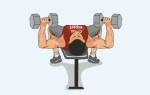 - Подъем гантелей. Этот инвентарь даже предпочтительнее, поскольку упражнения можно разнообразить, применяя «молотки» (хват внутрь ладонями) или попеременный подъем гантелей.
