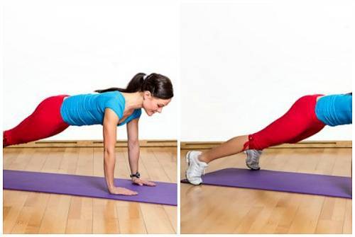 Планка с перешагиваниями. Встаньте в планку, опираясь на ладошки и стопы. Кисти должны находиться под плечами. Напрягите пресс, а поясницу не прогибайте. Шагните влево сначала левой рукой, потом левой ногой. После этого переступайте правой рукой и ногой. Повторите маневр в другую сторону.