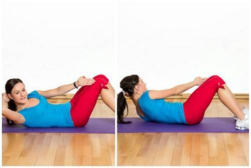 Складка с наклоном назад. Женщины с тонкой талией также могут выполнять те же движения для того, чтобы поддерживать фигуру в форме. Сядьте, обопритесь руками сзади таза, колени согните, а стопы поставьте на пол. Скруглите поясницу, упираясь ладошками, откиньтесь назад на 45 градусов относительно поверхности пола. Одновременно тяните ногу параллельно коврика. Вернитесь в исходную позу, и повторите тот же маневр, но уже другой ногой.