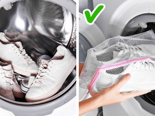 Металлические детали обуви могут повредить барабан стиральной машины. Используйте специальную сетку для обуви или положите в машину несколько старых полотенец.