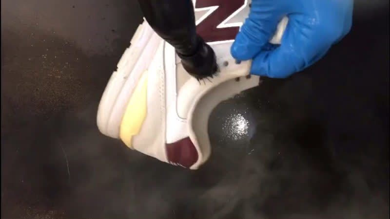 - Паровая обработка. Держите обувь над кипящей водой на расстоянии 15-20 см, чтобы увлажнить замшу и поднять ворс. Затем удалите пятна сухой тканью.