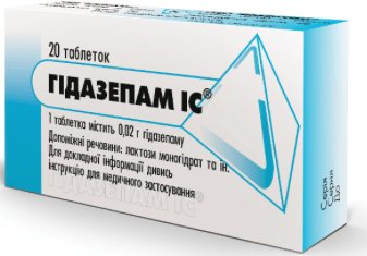 Форма выпуска: таблетки. Активный ингредиент: гидазепам. Применяется как дневной транквилизатор при раздражительности, эмоциональных перепадах, при проблемах со сном, при панических атаках. Используют при мигренях, алкоголизме в хронической стадии. Нельзя использовать при беременности, при лактации, при миастении, глаукоме. Запрещён при непереносимости активных компонентов препарата, при почечной и печёночной недостаточности.
