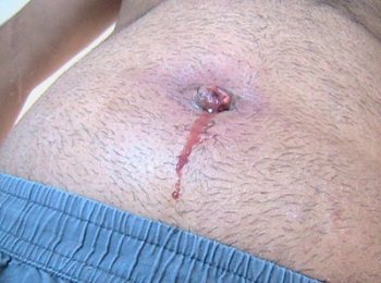 Например, такое состояние как портальная гипертензия (повышение давления в вене идущей из кишечника в печень) также может быть причиной выделения крови из пупка, но она также проявляется в виде отека брюшной полости, черным стулом или рвотой, болью, путаницей сознания.