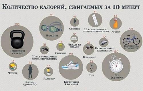Фото 1. Сравнение трат энергии при некоторых повседневных занятиях и тренировках, силовых или кардио.