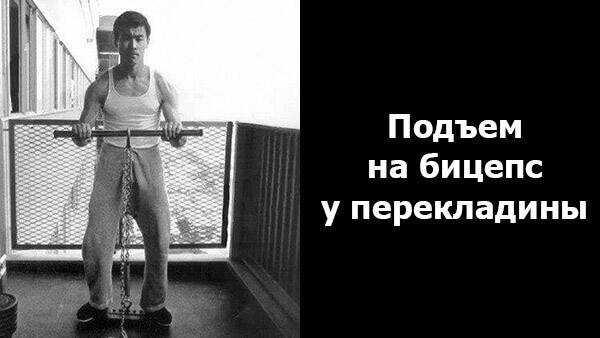 изометрические упражнения Брюса Ли, удержания штанги на бицепс, выжиманиях зафиксированной перекладины вверх, удержании уголка, практикуемых часто в бодибилдинге для начинающих;