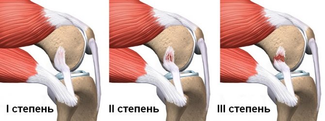 В зависимости от поражения определённых связок коленного сустава различают несколько форм патологии:
