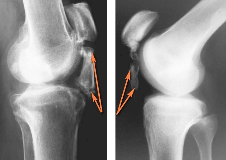- Остеофикацией и отрывом связок;