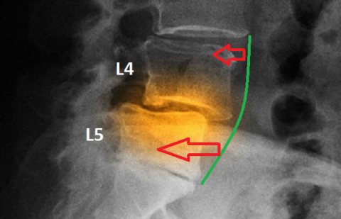 - Постепенное развитие сколиоза, сглаживание естественного поясничного лордоза;