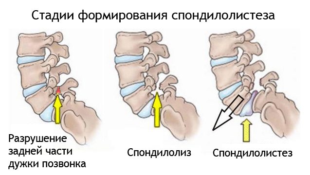 Ретролистез первого-третьего позвонков встречается очень редко. Развиться он может после перенесенных травм позвоночника и при гиперлордозе поясничного отдела. Ретролистез четвертого позвонка обычно представляет собой следствие перенесенной травмы. Когда одновременно смещаются четвертый и пятый позвонок – образуется «лестничный ретролистез».