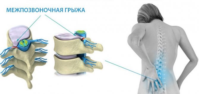 Смещение пятого позвонка иногда сопровождается развитием межпозвоночной грыжи. Такое протекание заболевания характеризуется сильными болями в области поясницы и ограниченной подвижностью нижних конечностей. Иногда доходит до паралича.