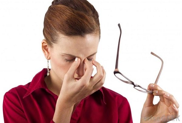 Также может наблюдаться незначительное уменьшение поля зрения и ощущение напряжения, а иногда и болезненность в глазах.
