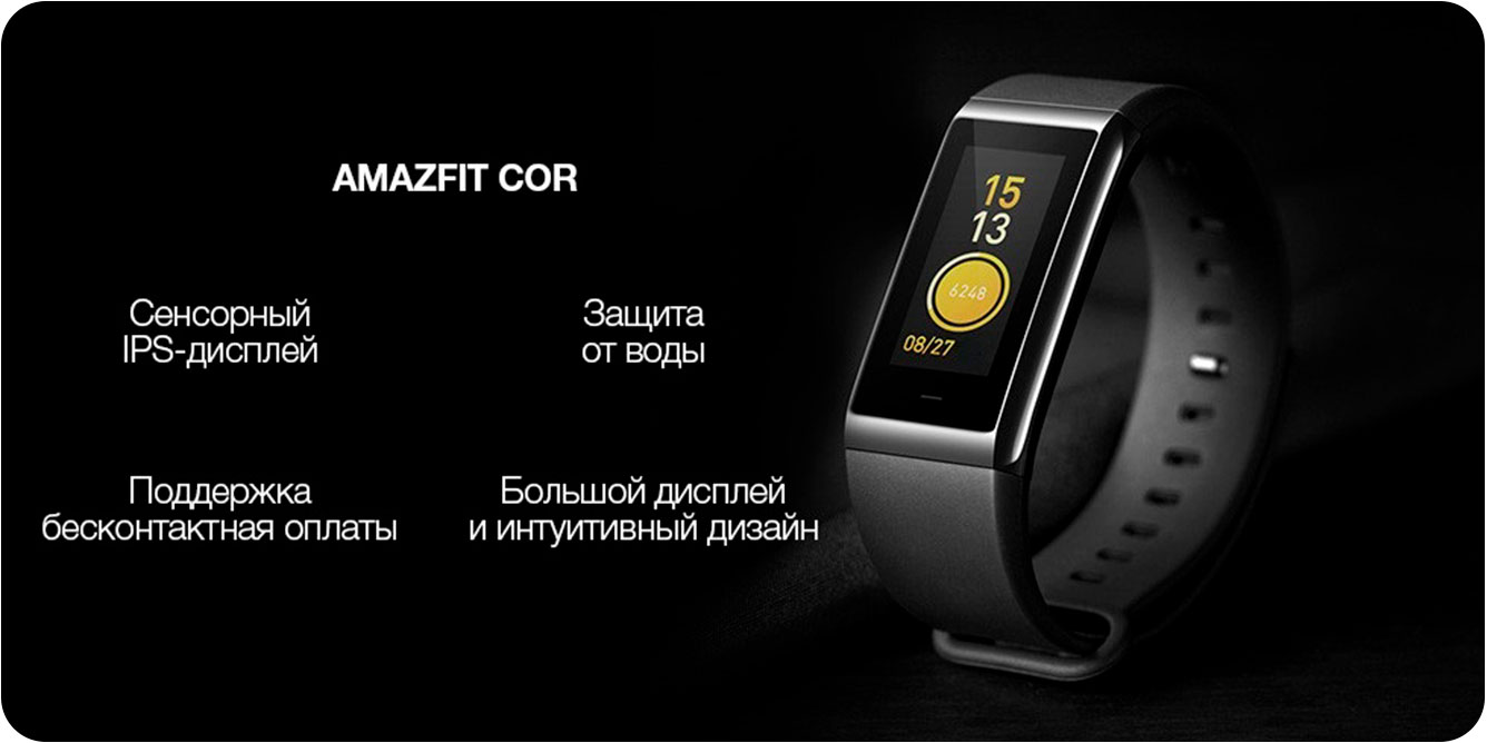 Amazfit Cor — фитнес-браслет, разработанный совместно Xiaomi и Huami. Это второе устройство в линейке, альтернативное Xiaomi Mi Band 2. Новая модель имеет цветной экран, расширенный функционал и водонепроницаемость до 50 метров.