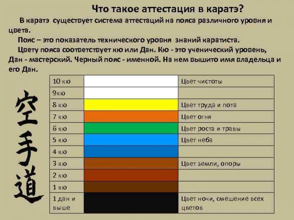 Система кю в карате и соответствие цвету пояса