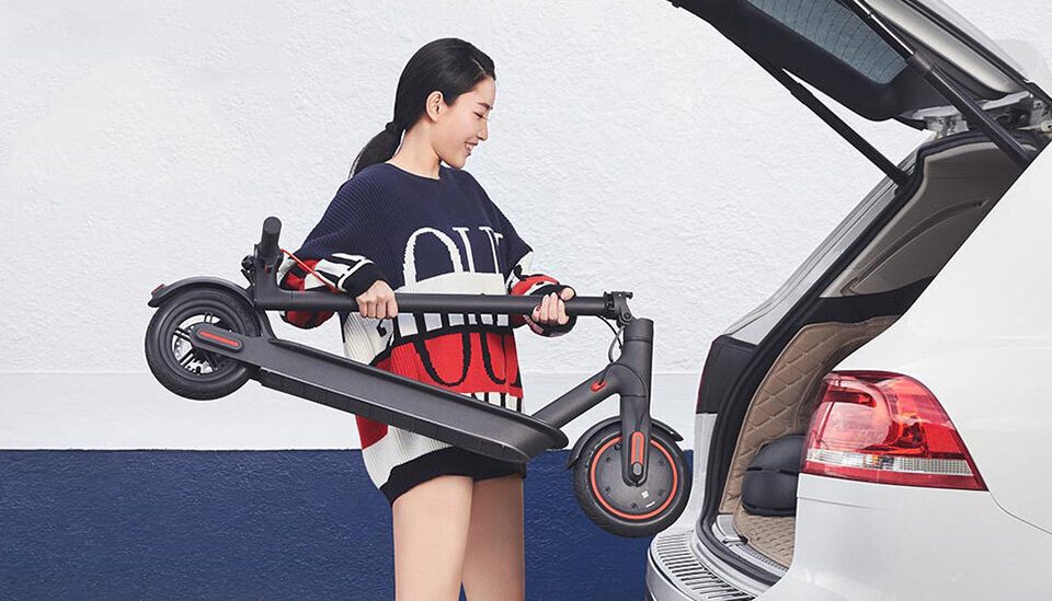 Электросамокаты Mijia M365 от компании Xiaomi удобны в транспортировке. Конструкция оснащена складным механизмом. Для его активизации надо открутить руль и прижать его к заднему колесу, на котором есть специальная защелка. После этого можно переносить средство передвижения, помещать в багажник автомобиля или перевозить на общественном транспорте.