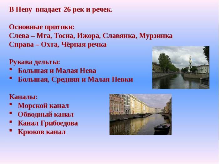 Строительство города на островах способствовало развитию системы водоснабжения и помогало защититься от пожаров. Путем создания каналов, осушались многочисленные болота, окружающие Петербург. О том, куда впадает река Нева, расскажет эта статья.