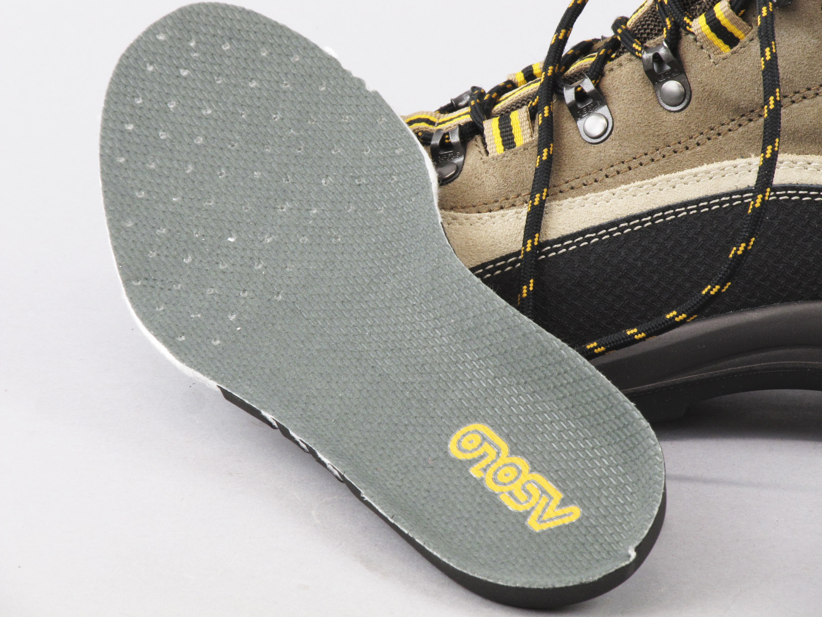 - Asolo. Производят прочные ботинки с качественной подошвой с амортизирующим слоем. Высокое голенище защищает от вывихов и растяжений. Фурнитура надежная, отличного качества. Но в обуви имеются вставки из текстиля, пропускающие воду.