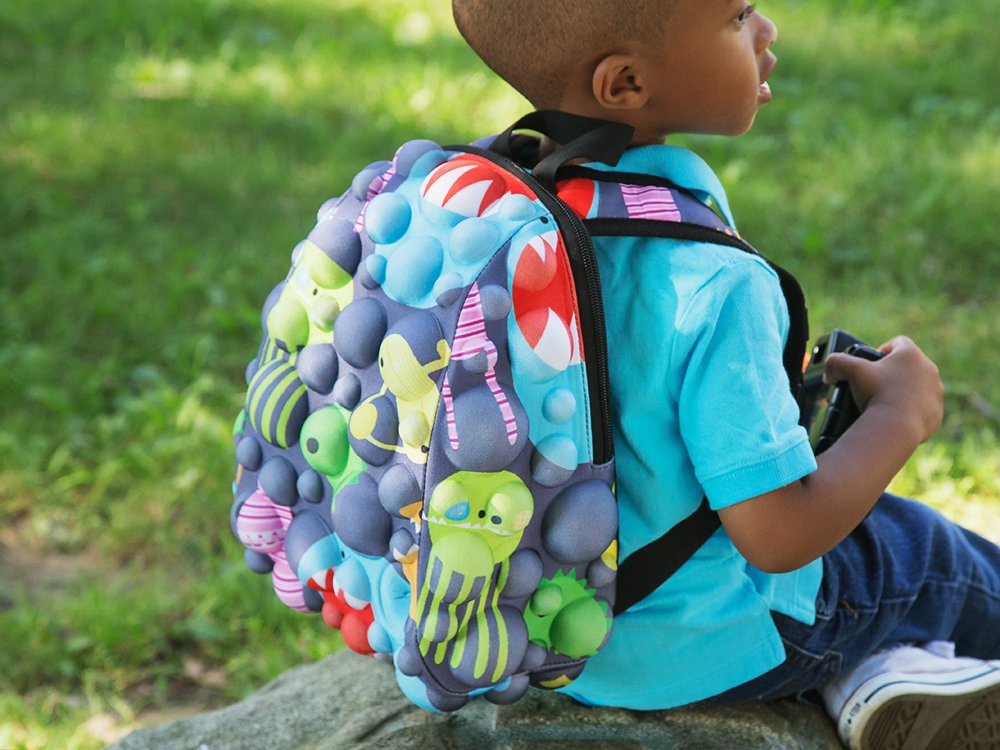 Ключевая особенность продукции MadPax — необычная «объемная» текстура с пузырями, шипами и блоками. Она сочетается с яркими «кислотными» цветами, выразительными принтами и футуристическими формами. Рюкзак напоминает существо из научной фантастики или фэнтези, что привлекает внимание. Родители ценят высокое качество и удобство использования.