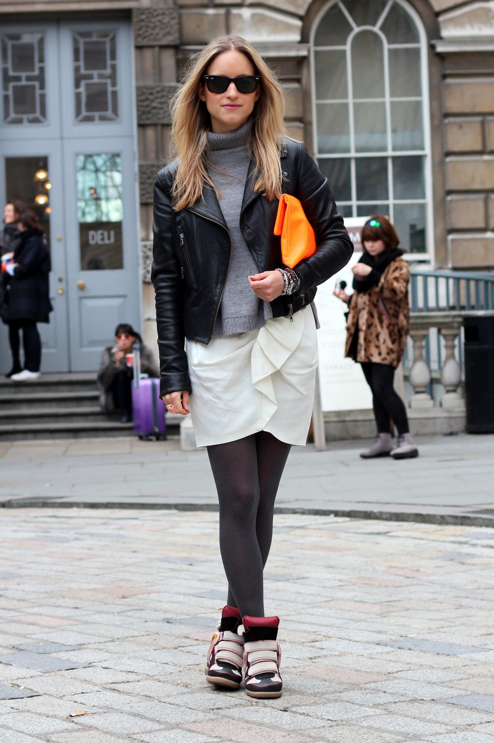- если обувь в сине-бело-красной палитре — с виниловыми брюками или узкими леггинсами, курткой-косухой, свитшотом или ярким джемпером с оригинальным принтом;