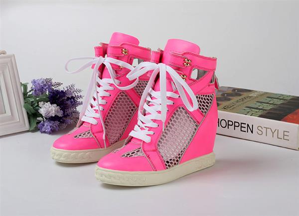 Порой кажется, что сникерсы были созданы именно для женщин: настолько поражают разнообразием разработанные для них варианты кроссовок на каблуках — высокие и низкие, закрытые полностью или состоящие из носка, пятки и отверстий по бокам, с замаскированной танкеткой или, наоборот, с подчеркнуто открытым каблуком. Чаще всего используется следующее оформление подошвы: