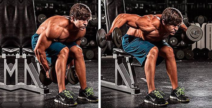 Самое эффективное движение для заднего пучка. Выполняется в разных вариациях, от положения в наклоне, до фиксации груди в наклонную скамью.
