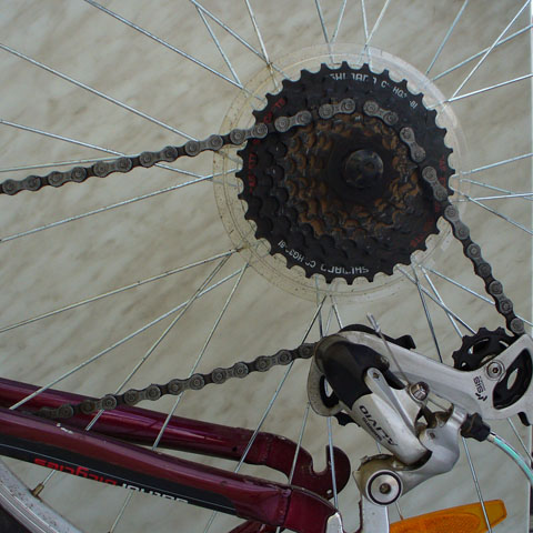 | 1 | Переключите передачу на самую легкую (самую маленькую звездочку сзади). | |