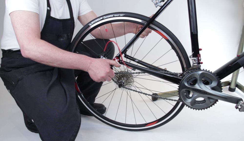 - переверните велосипед на колеса;