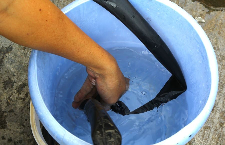 - Поместите камеру в воду. В области прокола появятся пузырьки воздуха. Это самый простой способ, после которого шину следует тщательно высушить.