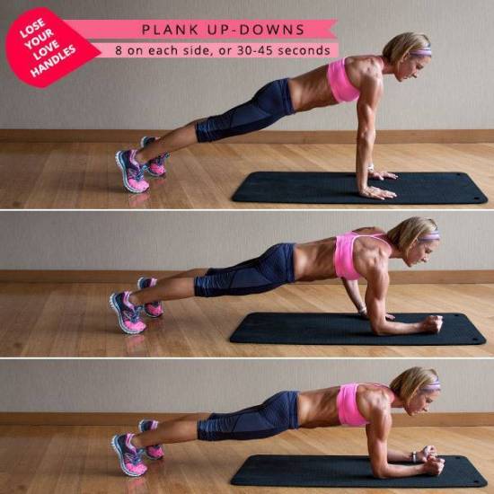 Динамическая планка: 8 повторений с каждой стороны или 30-45 секунд