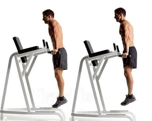 На брусьях. Техника выполнения упражнения проста. Необходимо поднять тело и повиснуть на брусьях на вытянутых руках. Не сгибая локтевые суставы, надо максимально приподнять корпус вверх. Зафиксируйте эту позицию на 10 секунд, затем расслабьтесь и отдохните 10 секунд.