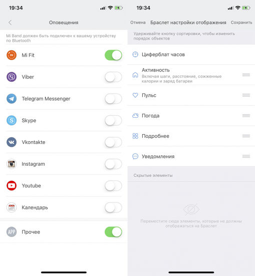 Нажимается соответствующая кнопка в приложении Mit Fit. Дополнительно можно настроить отображение информации о контактах, которые находятся в памяти смартфона |