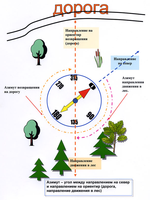 | Прокладка маршрута | Проложить маршрут на карте, определить азимуты на каждом участке | Определить начальный азимут и следовать ему, корректируя курс по ориентирам |