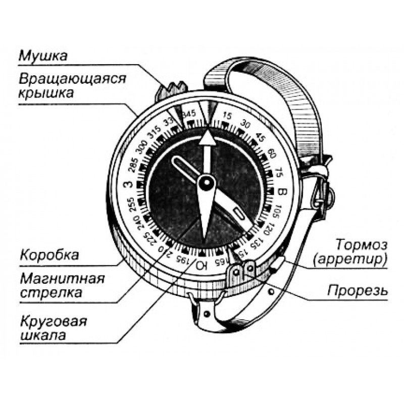 Устройство стандартного компаса элементарное: круглая основа со стальной иголкой, на конце которой закреплен магнитный указатель. Эту модель изобрел российский инженер Адрианов, и она встречается чаще всего благодаря простоте и легкости использования. Указатель реагирует на магнитное поле планеты и поворачивается к полюсам.