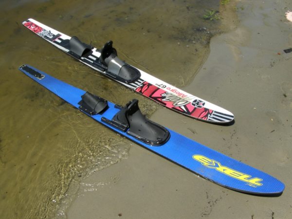 Водные лыжи отличаются от традиционных шириной, формой и материалами. Модели из пенополиуретана или пластика обеспечивают хорошее скольжение и устойчивость. Существует три основных типа водных лыж: