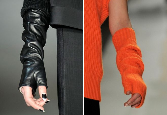 Короткие перчатки удачно дополняют дерзкий образ. Они вписываются в спортивный стиль, подходят под порванные джинсы, кожаную одежду, широкие свитера. Длинные, сдержанные митенки — атрибут, который идет под платья, пальто, шубки.