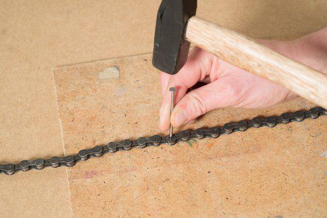 - Найдите штырь (гвоздь, сверло, дюбель или шило) с диаметром немного меньшим, чем валик звена, и приставьте его к пину (если пин отсутствует, используйте любое звено).