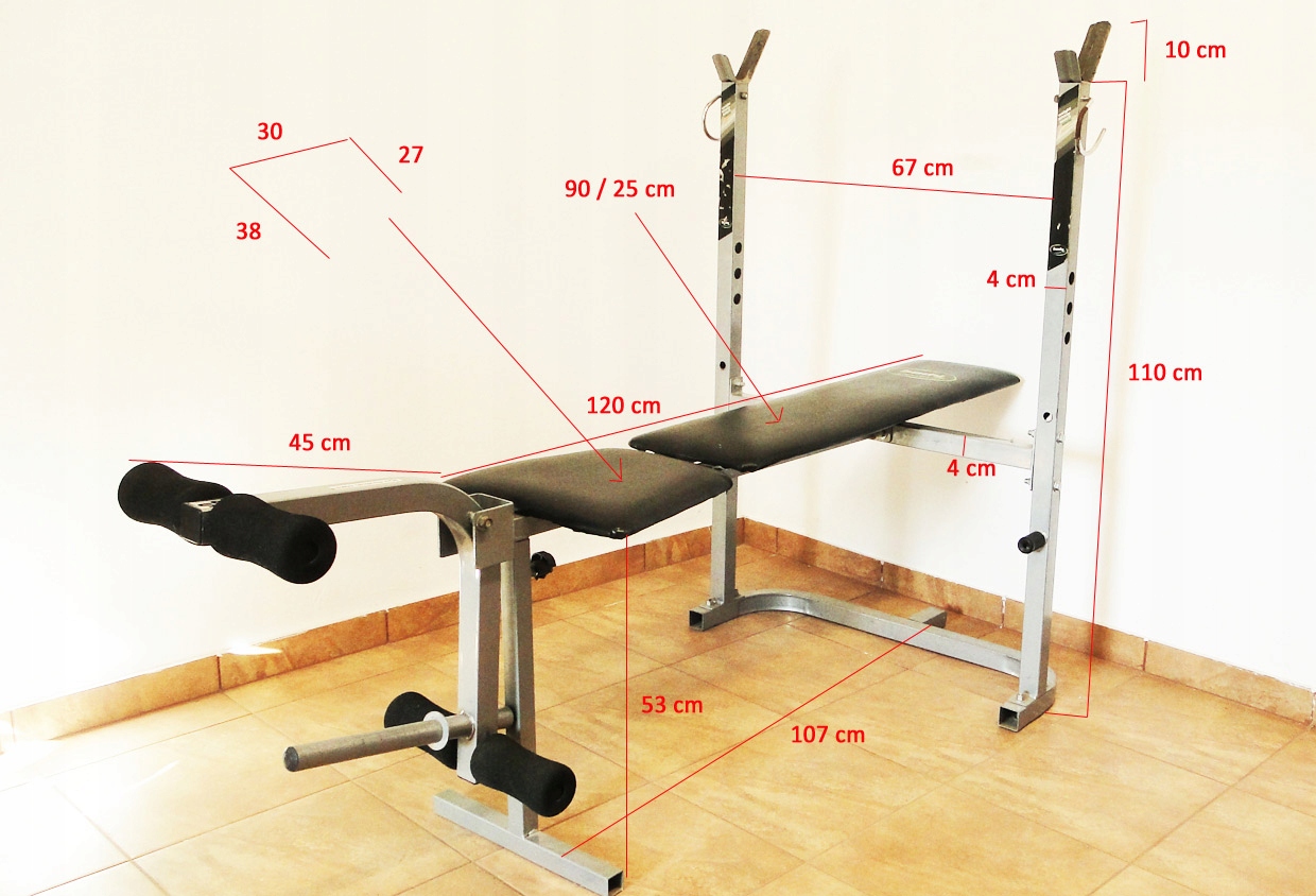 Оптимальная ширина между стойками на горизонтальной скамье должна составлять около 110 см. Если это расстояние будет меньше или больше, работать со штангой будет неудобно.