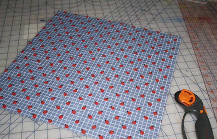 - Разложите ткань на ровной поверхности.