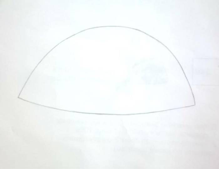 - Изначально делается выкройка. С этой целью на бумаге чертится два полукруга. Диаметр их составляет 22 см, а высота равняется 6 см.