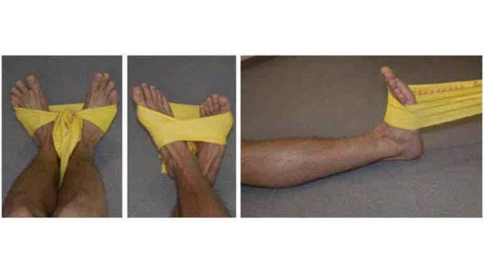 Отдельное внимание следует уделить упражнениям для голеностопа с резиновой лентой. Приобрести ее можно в аптеке