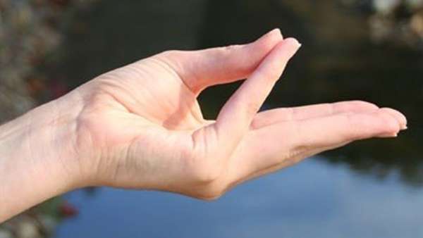 Соединить указательный, средний и большой палец вместе. Сохранять позу рук полчаса. Желательно выполнять утром.