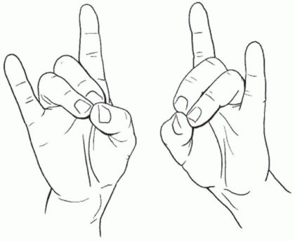 - Средний и указательный пальцы свободно выпрямить. Они не должны быть напряжены.