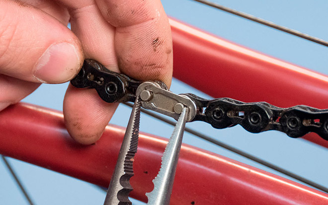 Если приходится многократно разбирать цепь на велосипеде, необходимо каждый раз выбирать разные звенья. Выдавливание одного и того же штифта снизит прочность полотна.