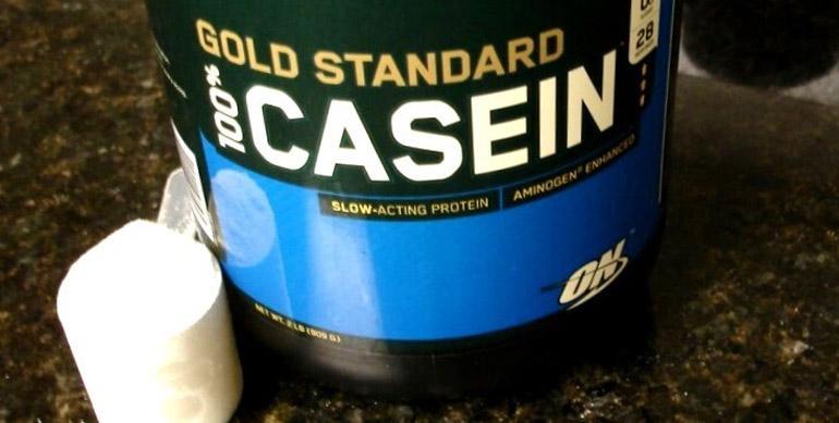 Казеин, как уже говорилось, представляет собой сложный белок, получаемый при ферментации молока. В казеиновые смеси добавляется также сложный растительный белок глютен, также преобразующийся в пептиды и аминокислоты, необходимые для строения клеток. В желудке человека казеин переваривается до восьми часов, постепенно насыщая организм нужными ему аминокислотами. Казеин также замедляет переваривание иных видов белка.