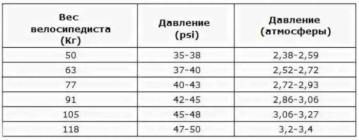 - чем больше вес велосипедиста, тем выше должно быть давление.