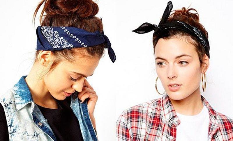 Элегантные платки подчеркивают красоту стильных причесок. Широкие и узкие модели добавляют образам романтики и очарования. Наиболее популярны банданы, идеально подходящие для конского хвоста, а также для причесок в греческом стиле и стиле пин-ап.
