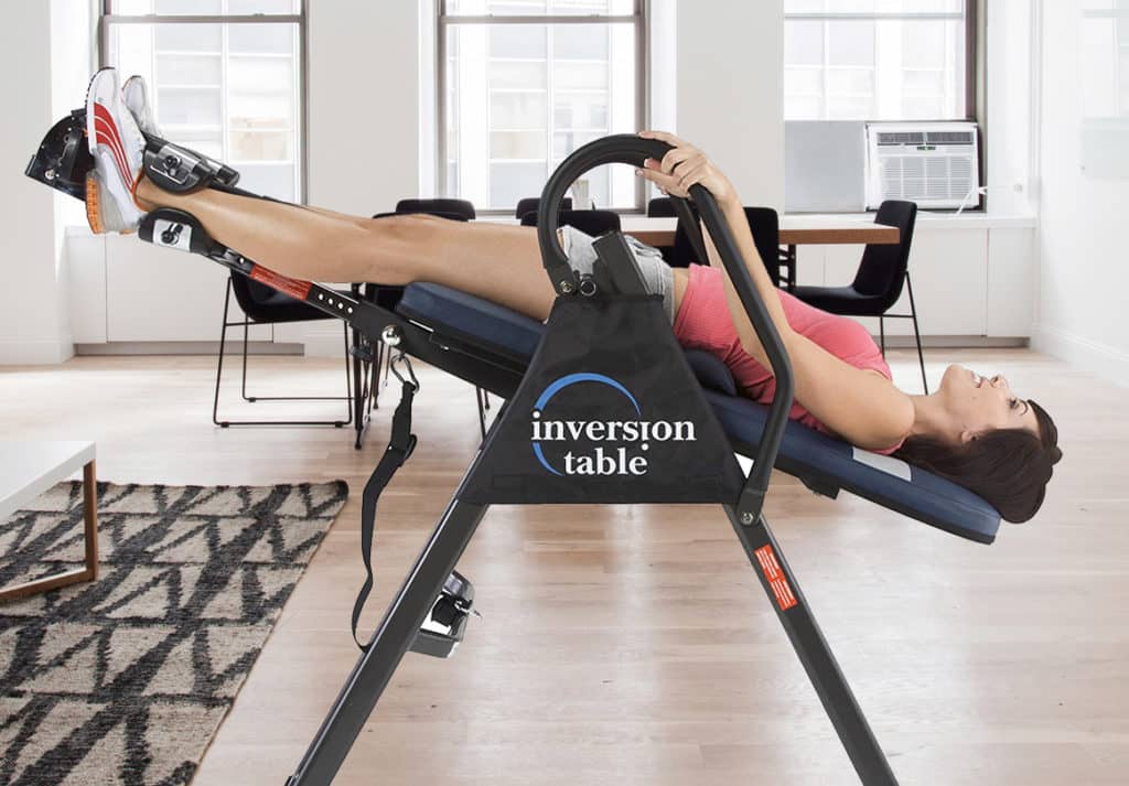 Инверсионная терапия практикуется с использованием инверсионного стола, что позволяет пользователю обезопасить себя, а затем отрегулировать угол наклона стола. Пользователь может оставаться в перевернутом положении достаточно долго — обычно до 15 минут.
