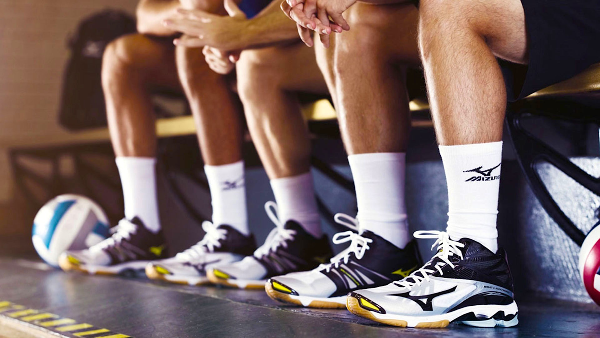- Mizuno. Достойный конкурент компании Asics, использующий технологию «wave» при создании обуви. Специальная легкая пластина-основание «поглощает» энергию ударных нагрузок при прыжках. Бренд адаптирует модели обуви под конкретные напольные покрытия. Пользуются спросом кроссовки Mizuno LIGHTNING, Mizuno TORNADO.